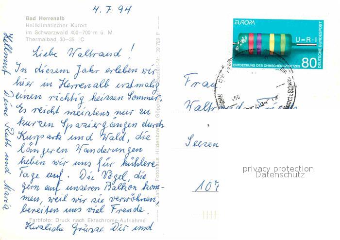 72886514 alte Postkarte Bad Herrenalb Denkmal Kirche Heilklimatischer Kurort im Schwarzwald postalisch gelaufen Erhaltung siehe scans [FriedD77] KatCode: 11110008235033