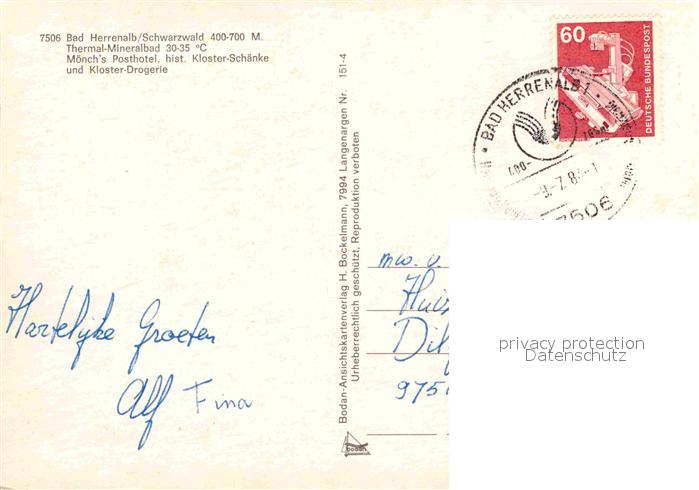 72655712 alte Postkarte Bad Herrenalb Fachwerk Moenchs Posthotel Kloster-Schaenke und Drogerie postalisch gelaufen Erhaltung siehe scans [LiesaD40] KatCode: 11110008235033