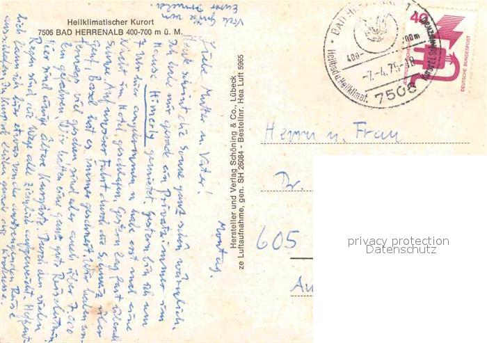 72841073 alte Postkarte Bad Herrenalb Fliegeraufnahme postalisch gelaufen Erhaltung siehe scans [NatalD47] KatCode: 11110008235033