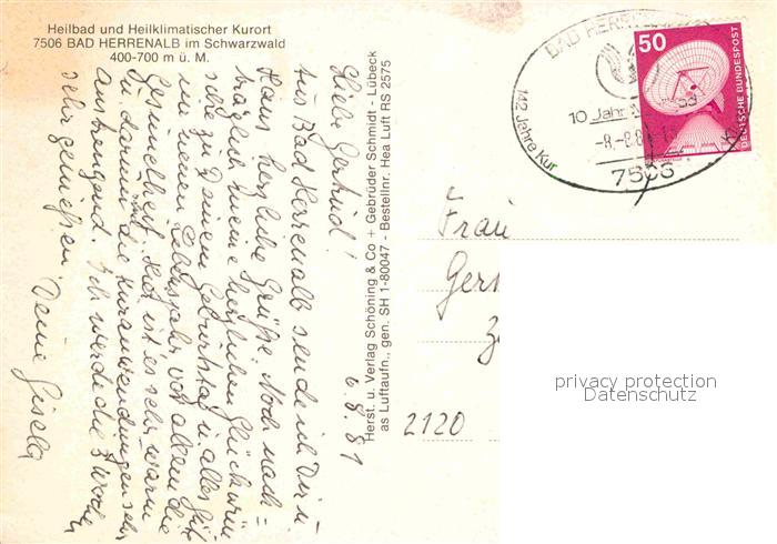 72682698 alte Postkarte Bad Herrenalb Fliegeraufnahme postalisch gelaufen Erhaltung siehe scans [LiesaD40] KatCode: 11110008235033