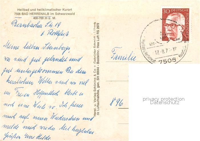 73829813 alte Postkarte Bad Herrenalb Fliegeraufnahme postalisch gelaufen Erhaltung siehe scans [WerneD78] KatCode: 11110008235033