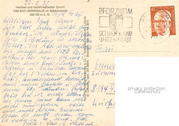 73765725 alte Postkarte Bad Herrenalb Fliegeraufnahme postalisch gelaufen Erhaltung siehe scans [WerneD78] KatCode: 11110008235033