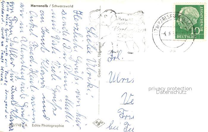 72992445 alte Postkarte Bad Herrenalb Gesamtansicht postalisch gelaufen Erhaltung siehe scans [AndreD76] KatCode: 11110008235033