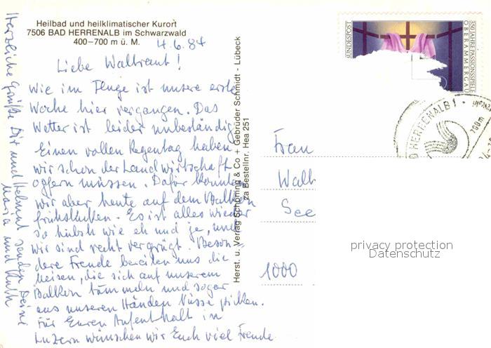 72885497 alte Postkarte Bad Herrenalb Haeuserpartie an der Alb Kurort im Schwarzwald postalisch gelaufen Erhaltung siehe scans [FriedD77] KatCode: 11110008235033