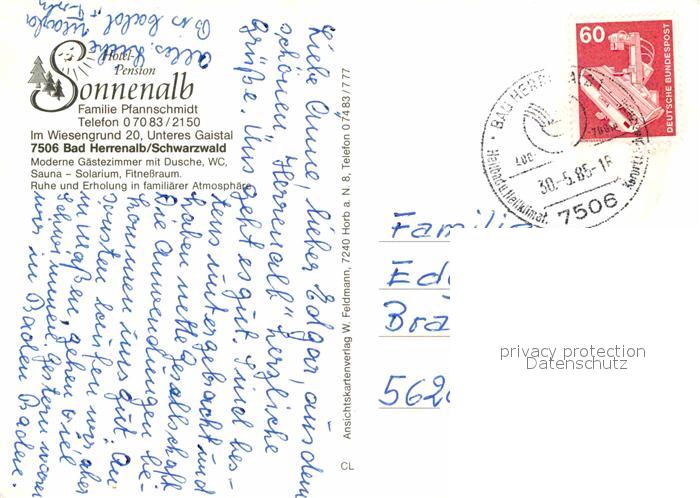 72753944 alte Postkarte Bad Herrenalb Hotel Pension Sonnenalb postalisch gelaufen Erhaltung siehe scans [FriedD77] KatCode: 11110008235033