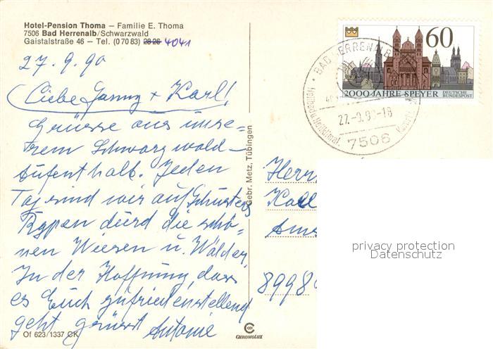 73719820 alte Postkarte Bad Herrenalb Hotel Pension Thoma Panorama Liegewiese Park postalisch gelaufen Erhaltung siehe scans [WerneD78] KatCode: 11110008235033