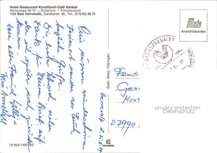 72504911 alte Postkarte Bad Herrenalb Hotel Restaurant Gaistal postalisch gelaufen Erhaltung siehe scans KatCode: 11110008235033