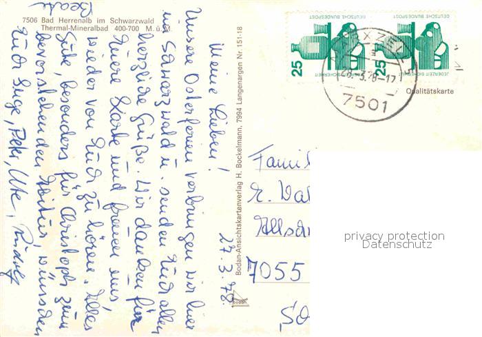 72649143 alte Postkarte Bad Herrenalb Klosterruine Altstadt Fachwerkhaeuser Hotel Kurpark Kurkonzert KuranlagenTeich Thermalbad Schwarzwald postalisch gelaufen Erhaltung siehe scans [FriedD77] KatCode: 11110008235033