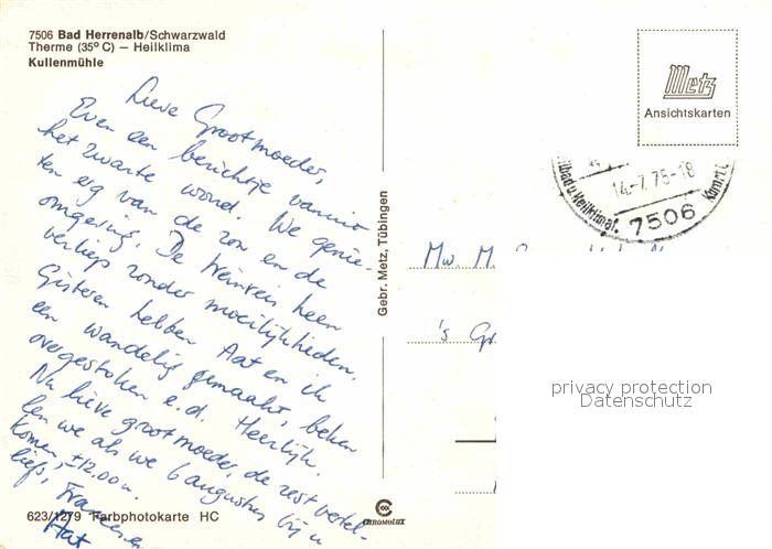 72772757 alte Postkarte Bad Herrenalb Kullenmuehle postalisch gelaufen Erhaltung siehe scans [WerneD78] KatCode: 11110008235033