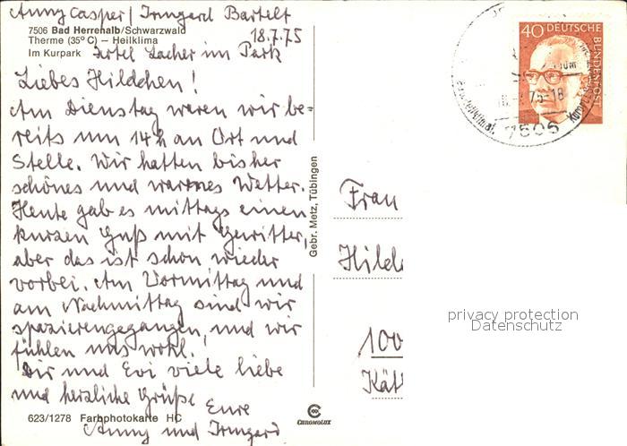 72479333 alte Postkarte Bad Herrenalb Kurpark postalisch gelaufen Erhaltung siehe scans KatCode: 11110008235033