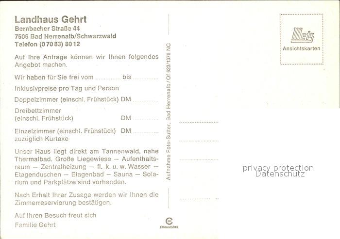 72369101 Bad Herrenalb Landhaus Gehrt postalisch nicht gelaufen Erhaltung siehe scans KatCode: 11110008235033