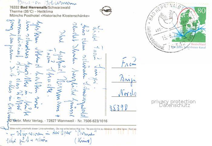 72899955 alte Postkarte Bad Herrenalb Moenchs Posthotel postalisch gelaufen Erhaltung siehe scans [NatalD47] KatCode: 11110008235033