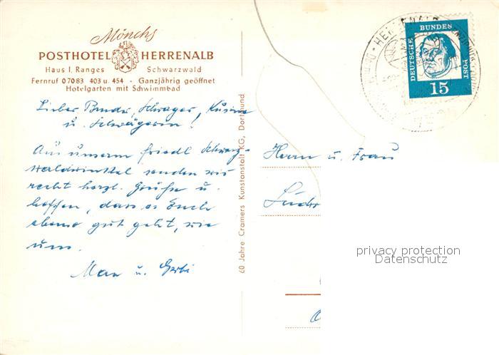73009215 alte Postkarte Bad Herrenalb Moenchs Posthotel Herrenalb Liegewiese Schwimmbad postalisch gelaufen Erhaltung siehe scans [WerneD78] KatCode: 11110008235033