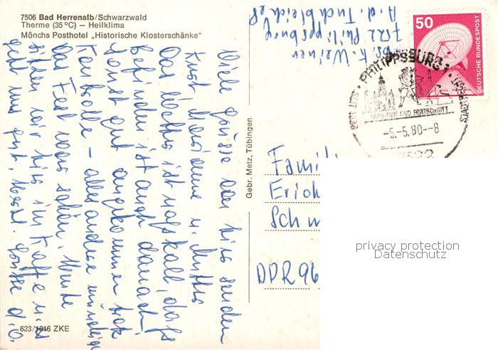 73828633 alte Postkarte Bad Herrenalb Moenchs Posthotel Historische Klosterschaenke postalisch gelaufen Erhaltung siehe scans [WerneD78] KatCode: 11110008235033