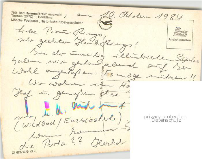 73758577 Bad Herrenalb Moenchs Posthotel Historische Klosterschaenke postalisch nicht gelaufen Erhaltung siehe scans [FriedD77] KatCode: 11110008235033