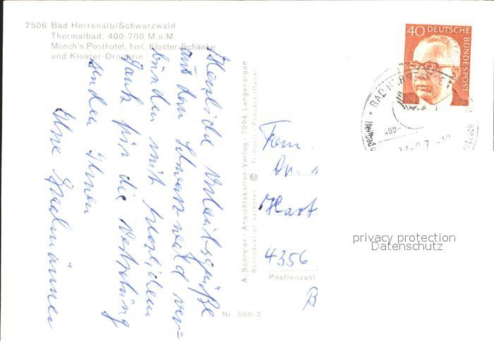 72296452 alte Postkarte Bad Herrenalb Moenchs Posthotel Historische Klosterschaenke Klosterdrogerie Fachwerkhaus Thermalbad postalisch gelaufen Erhaltung siehe scans KatCode: 11110008235033