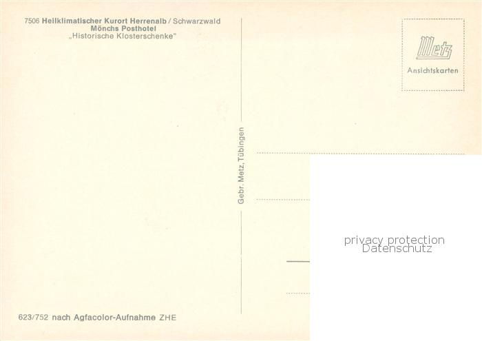 73754546 Bad Herrenalb Moenchs Posthotel Historische Klosterschenke Tuerschild postalisch nicht gelaufen Erhaltung siehe scans [FriedD77] KatCode: 11110008235033