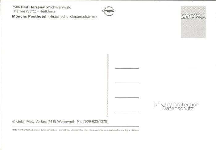 72446755 Bad Herrenalb Moenchs Posthotel Klosterschaenke postalisch nicht gelaufen Erhaltung siehe scans KatCode: 11110008235033