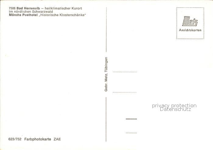 72409103 Bad Herrenalb Moenchs Posthotel Klosterschaenke postalisch nicht gelaufen Erhaltung siehe scans KatCode: 11110008235033