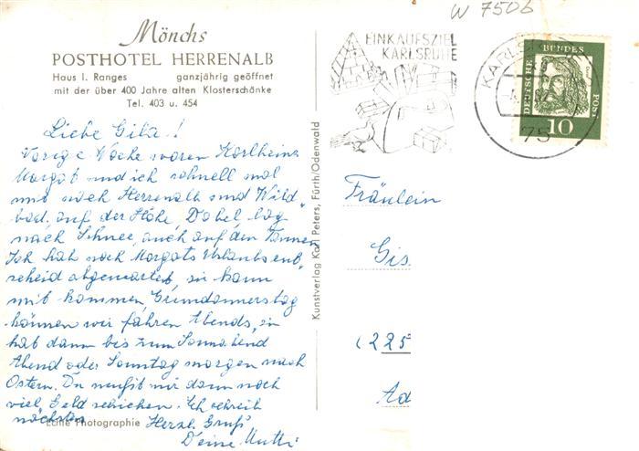 73876917 alte Postkarte Bad Herrenalb Moenchs Posthotel postalisch gelaufen Erhaltung siehe scans [FriedD77] KatCode: 11110008235033