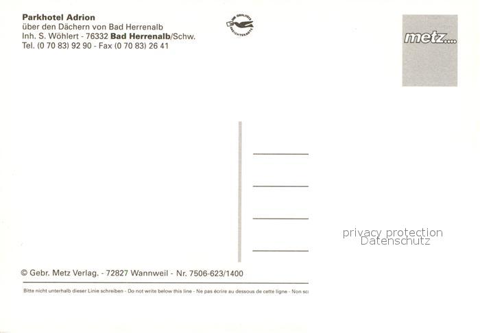 73174667 Bad Herrenalb Parkhotel Adrion postalisch nicht gelaufen Erhaltung siehe scans [PaolaD17] KatCode: 11110008235033