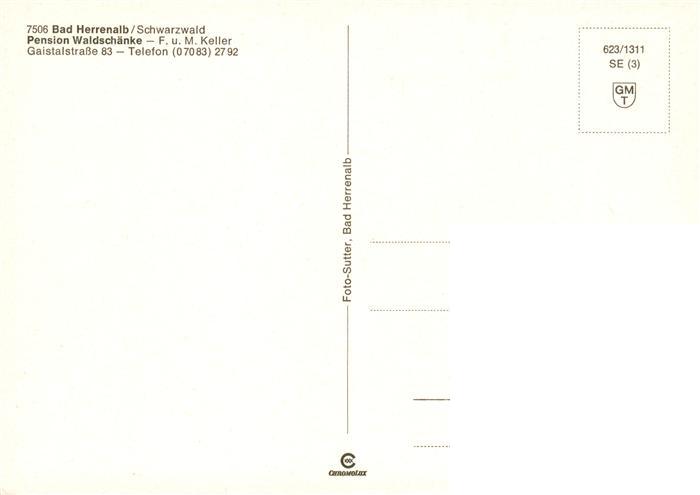 73947085 Bad Herrenalb Pension Waldschaenke Oberes Gaistal Schwarzwald postalisch nicht gelaufen Erhaltung siehe scans [FriedD77] KatCode: 11110008235033