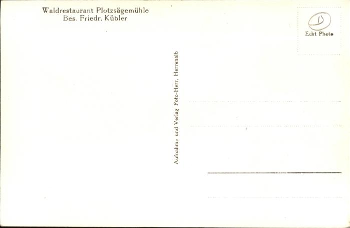 41082563 Bad Herrenalb Plotzsägemühle Waldrestaurant Bes. Friedr. Kübler KatCode 11110008235033