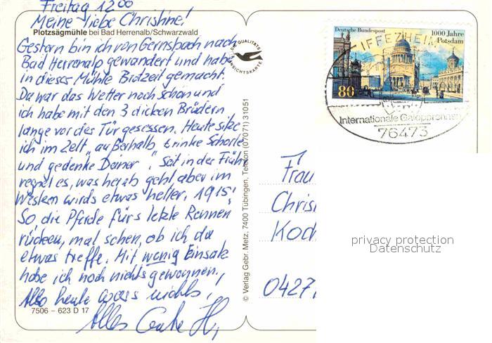 72752434 alte Postkarte Bad Herrenalb Plotzsaegemuehle Wasserrad Waldpartie postalisch gelaufen Erhaltung siehe scans [FriedD77] KatCode: 11110008235033