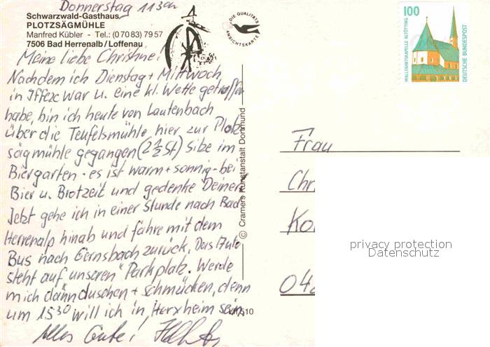 72760548 Bad Herrenalb Schwarzwald Gasthaus Plotzsaegmuehle Tracht postalisch nicht gelaufen Erhaltung siehe scans [LiesaD40] KatCode: 11110008235033