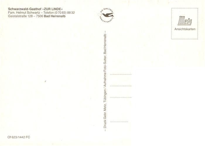 73947087 Bad Herrenalb Schwarzwald Gasthof zur Linde postalisch nicht gelaufen Erhaltung siehe scans [FriedD77] KatCode: 11110008235033