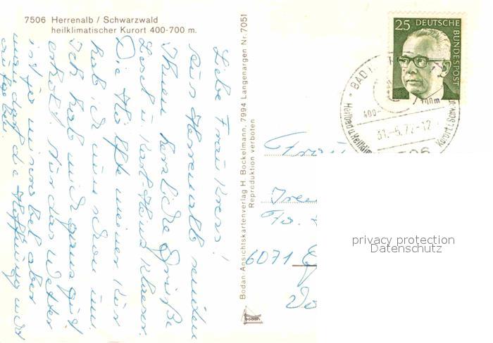 72787333 alte Postkarte Bad Herrenalb Teilansicht postalisch gelaufen Erhaltung siehe scans [WerneD78] KatCode: 11110008235033