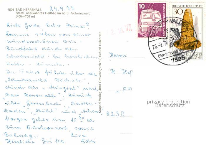 72844406 alte Postkarte Bad Herrenalb Teilansicht Heilbad im Schwarzwald postalisch gelaufen Erhaltung siehe scans [FriedD77] KatCode: 11110008235033