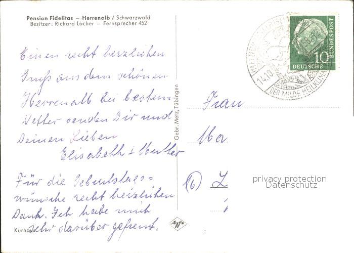 71942064 alte Postkarte Bad Herrenalb Teilansicht mit Pension Fidelitas postalisch gelaufen Erhaltung siehe scans KatCode: 11110008235033