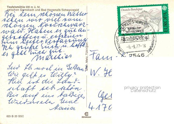 72786424 alte Postkarte Bad Herrenalb Teufelsmuehle postalisch gelaufen Erhaltung siehe scans [AndreD76] KatCode: 11110008235033