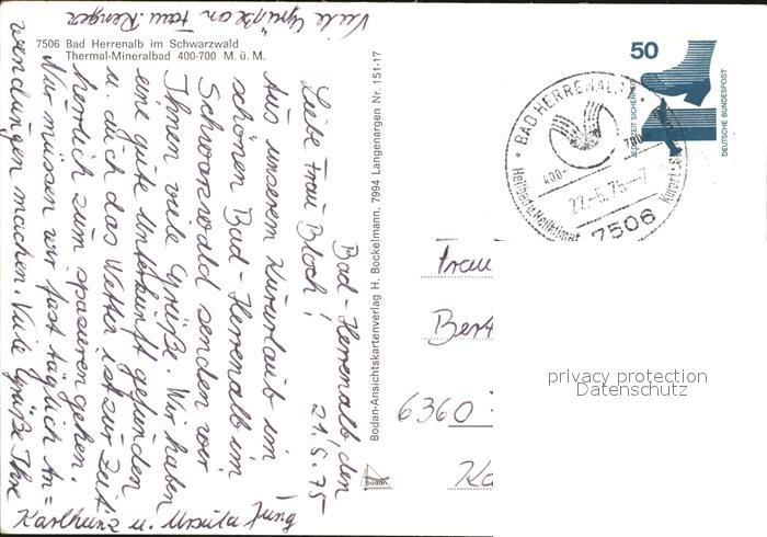72551613 alte Postkarte Bad Herrenalb Thermal Mineralbad Kirche Panorama postalisch gelaufen Erhaltung siehe scans [KathaD79] KatCode: 11110008235033