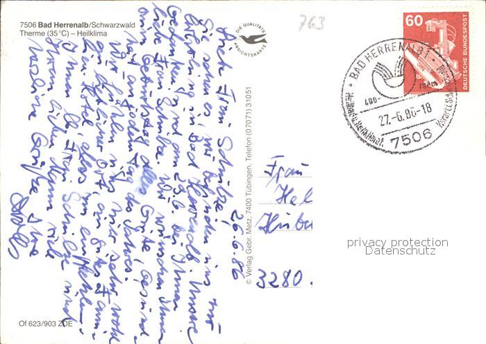 72603564 alte Postkarte Bad Herrenalb Therme Innenstadt Partie am Bachlauf postalisch gelaufen Erhaltung siehe scans [FriedD77] KatCode: 11110008235033