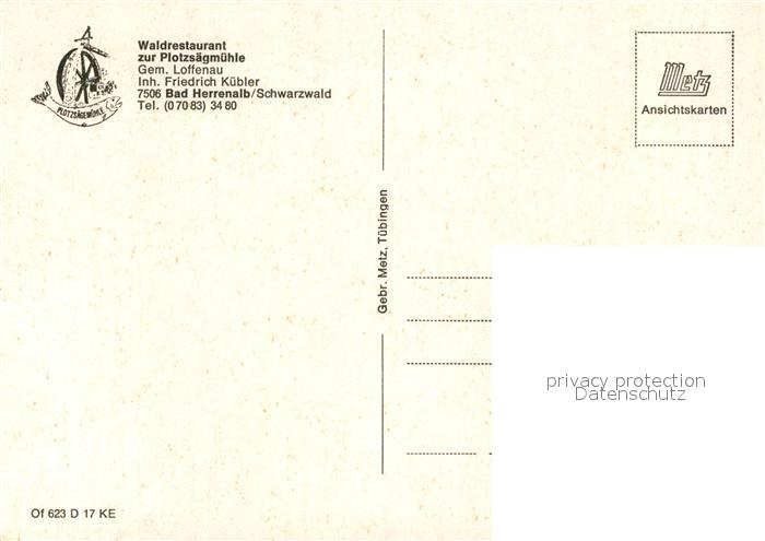 73213981 Bad Herrenalb Waldrestaurant zur Plotzsaegemuehle Muehlrad Gartenwirtschaft Waldweg postalisch nicht gelaufen Erhaltung siehe scans [WerneD78] KatCode: 11110008235033