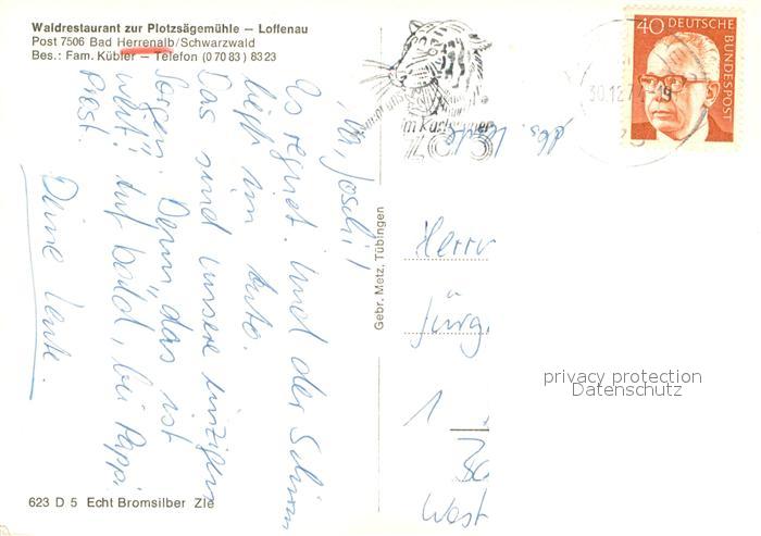 73664822 alte Postkarte Bad Herrenalb Waldrestaurant zur Plotzsaegemuehle Wasserfall und Bruecke bei der Klause Muehlrad postalisch gelaufen Erhaltung siehe scans [WerneD78] KatCode: 11110008235033
