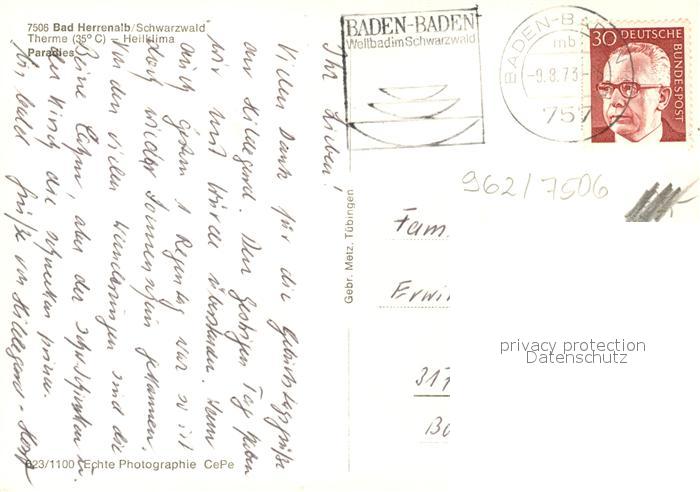 73279627 alte Postkarte Bad Herrenalb postalisch gelaufen Erhaltung siehe scans [NatalD47] KatCode: 11110008235033