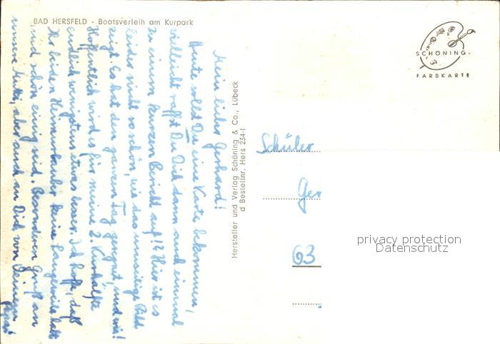 72393940 Bad Hersfeld Bootsverleih am Kurpark postalisch nicht gelaufen Erhaltung siehe scans KatCode: 11110006632002