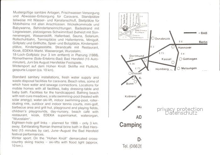 72528568 Bad Hersfeld Camping Seepark Kirchheim Fliegeraufnahme postalisch nicht gelaufen Werbekarte (keine Postkarte) Erhaltung siehe scans KatCode: 11110006632002