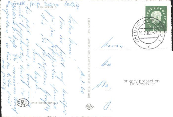 72128901 alte Postkarte Bad Hersfeld Fliegeraufnahme postalisch gelaufen Erhaltung siehe scans KatCode: 11110006632002