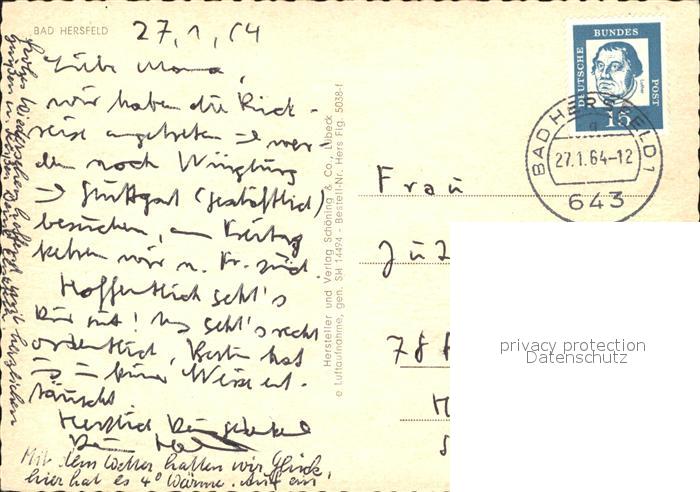 72047002 alte Postkarte Bad Hersfeld Fliegeraufnahme postalisch gelaufen Erhaltung siehe scans KatCode: 11110006632002