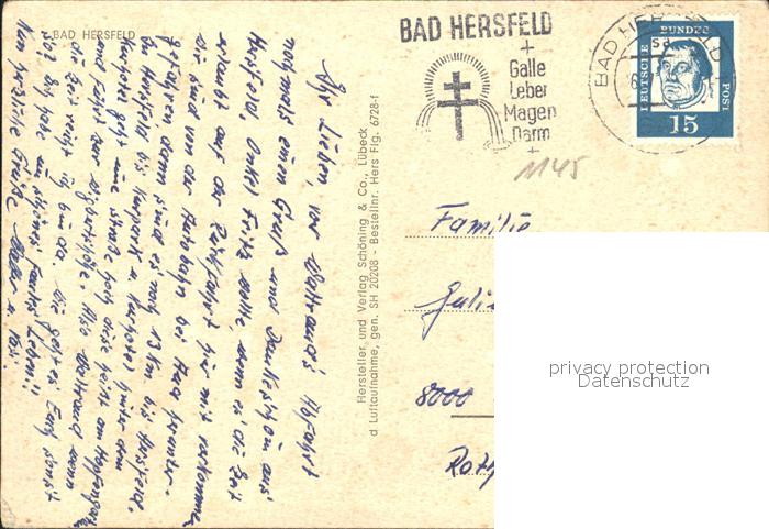 72009761 alte Postkarte Bad Hersfeld Fliegeraufnahme postalisch gelaufen Erhaltung siehe scans KatCode: 11110006632002