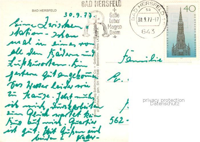 73776340 alte Postkarte Bad Hersfeld Fliegeraufnahme postalisch gelaufen Erhaltung siehe scans [LiesaD40] KatCode: 11110006632002