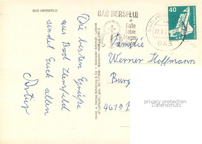 73686120 alte Postkarte Bad Hersfeld Fliegeraufnahme postalisch gelaufen Erhaltung siehe scans [WerneD78] KatCode: 11110006632002