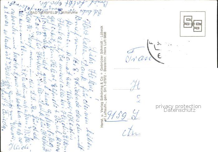 72401128 alte Postkarte Bad Hersfeld Fliegeraufnahme Stiftsruine postalisch gelaufen Erhaltung siehe scans KatCode: 11110006632002