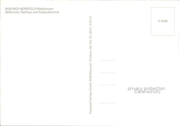72465191 Bad Hersfeld Fliegeraufnahme Stiftsruine Rathaus Dudendenkmal postalisch nicht gelaufen Erhaltung siehe scans KatCode: 11110006632002