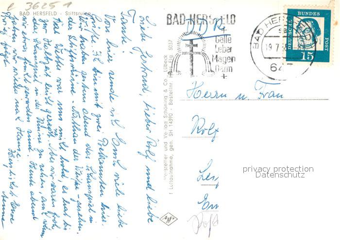 73668607 alte Postkarte Bad Hersfeld Fliegeraufnahme Stiftsruine postalisch gelaufen Erhaltung siehe scans [WerneD78] KatCode: 11110006632002
