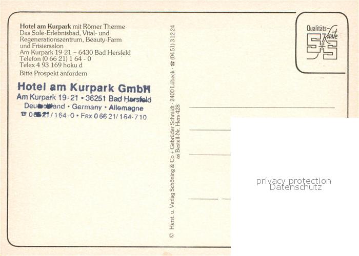 73654446 Bad Hersfeld Hotel am Kurpark Restaurant Halle Rezeption Hallenbad postalisch nicht gelaufen Erhaltung siehe scans [FriedD77] KatCode: 11110006632002